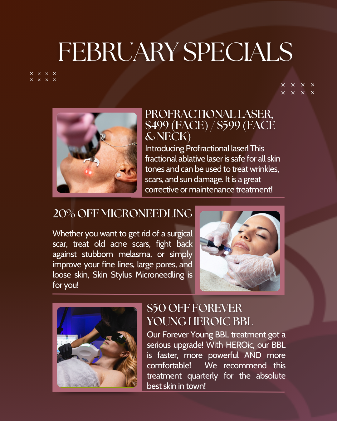 $50 off Forever Young HEROic BBL – Our Forever Young BBL treatment got a serious upgrade! With HEROic, our BBL is faster, more powerful AND more comfortable! We recommend this treatment quarterly for the absolute best skin in town!